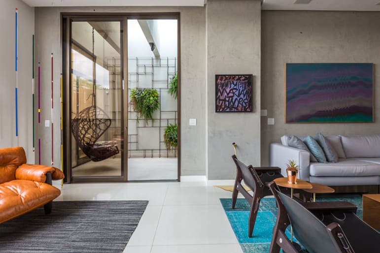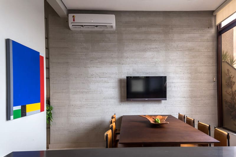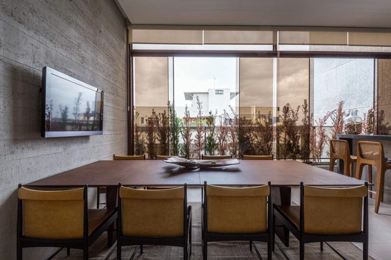Materiais de caráter neutro e atemporal — como o concreto aparente e a madeira —
