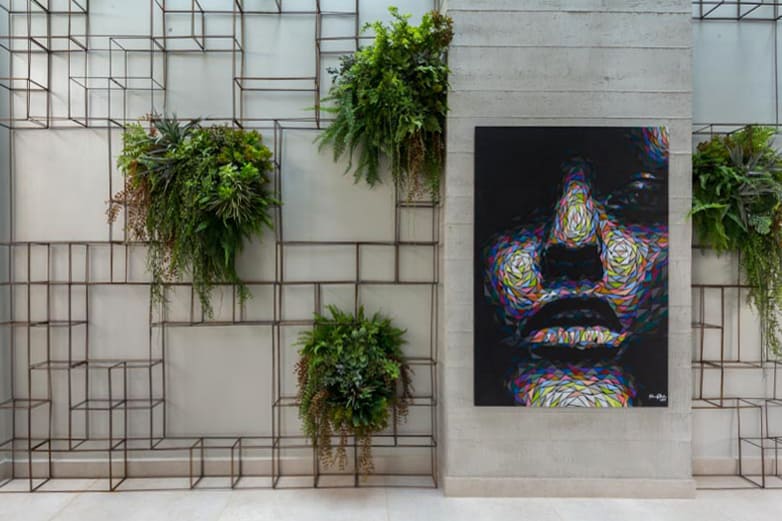 estabelecem uma base silenciosa, permitindo que a arte, a vegetação e a vida cotidiana se