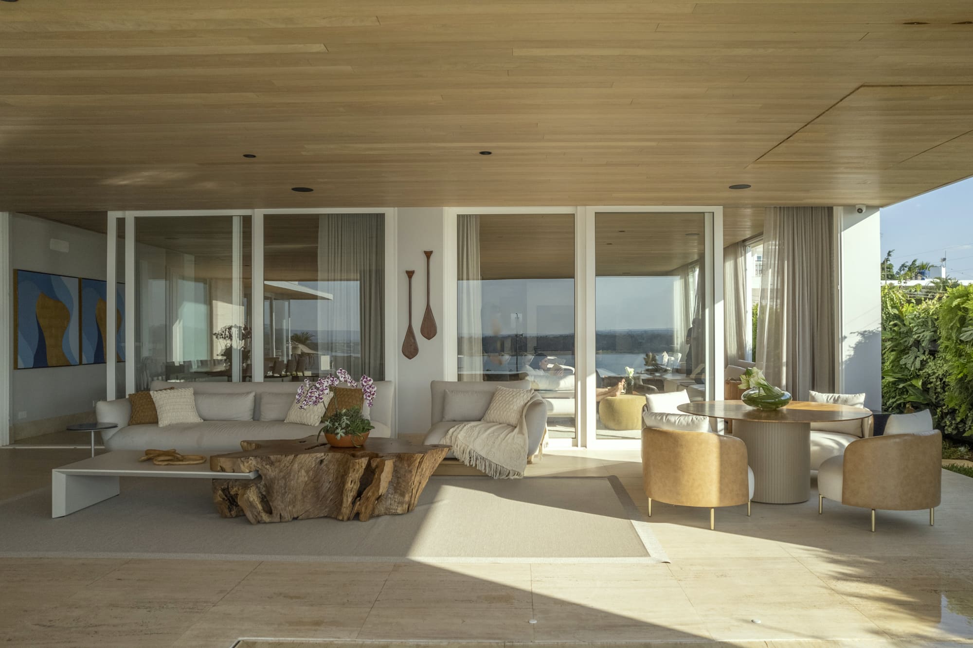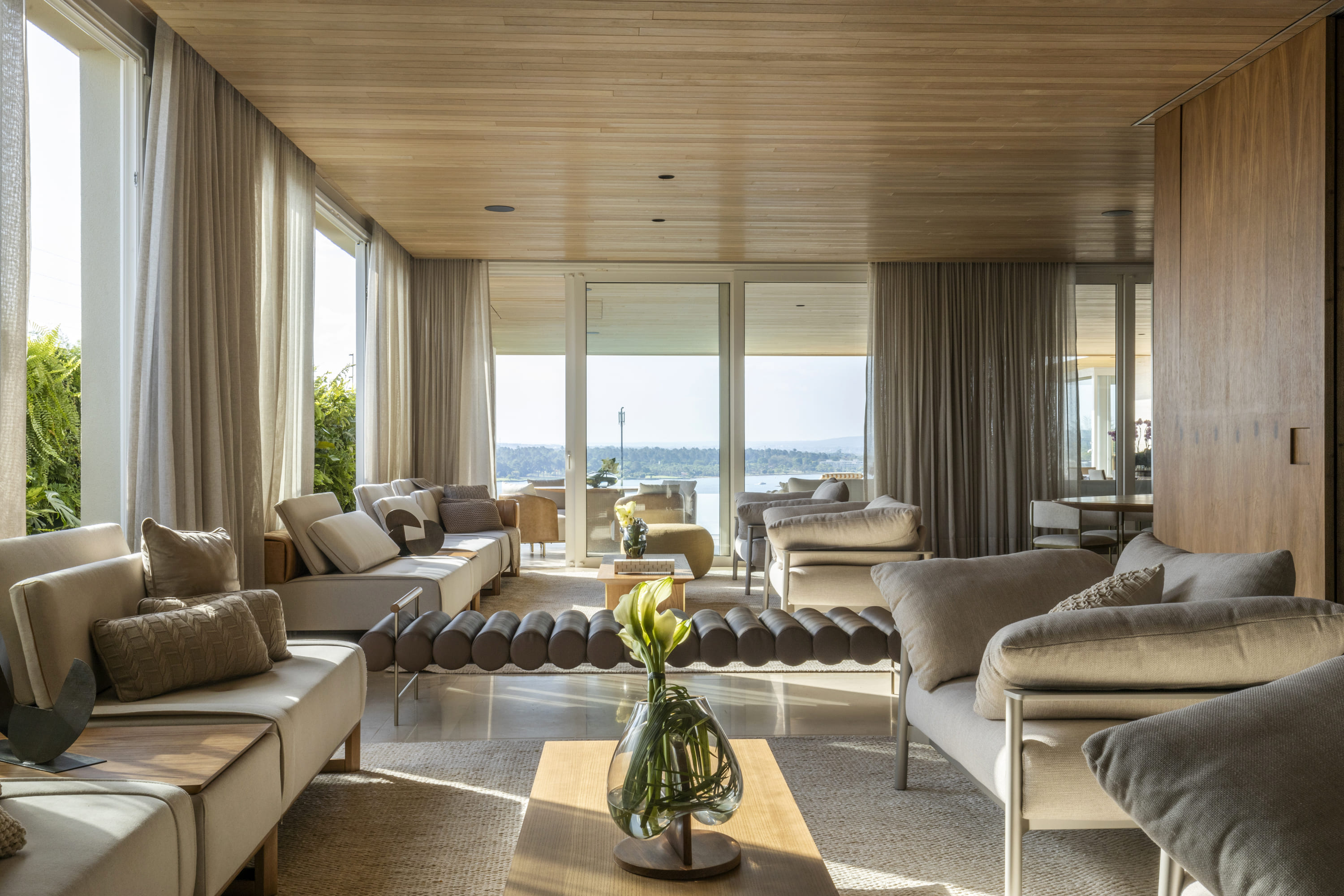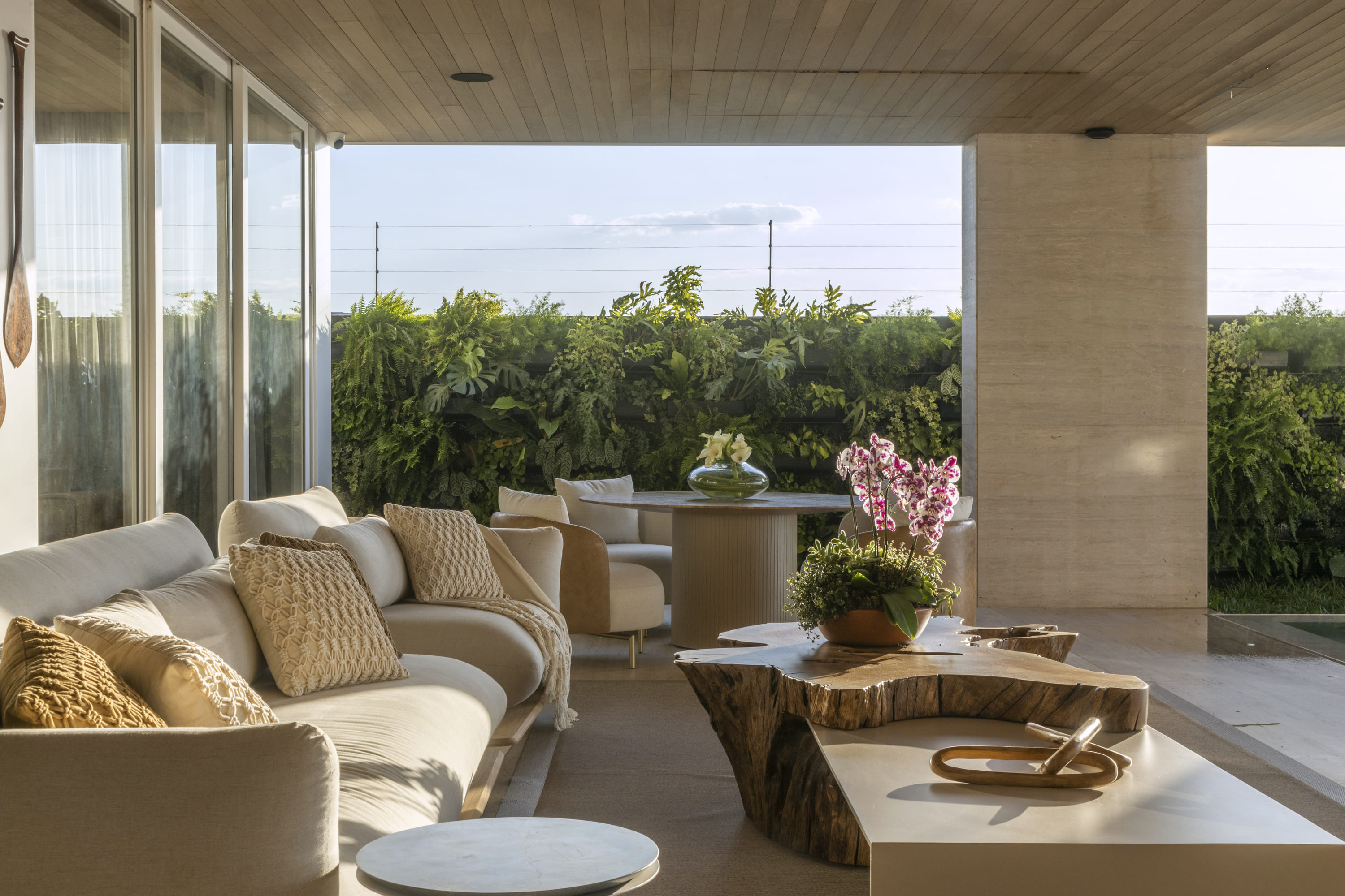 Localizada em um bairro nobre de Brasília com vista para o Lago Paranoá, a Casa Santuário é fruto de uma reforma que adotou uma abordagem minimalista para limpar a linguagem visual da construção original. O projeto enfrentou o desafio de controlar a incidência solar direta nas áreas sociais sem bloquear a paisagem, solucionando a questão através da criação de um espelho d'água suspenso. Este elemento funciona como extensão do beiral, protegendo o pavimento térreo e gerando um microclima mais agradável para as suítes superiores.