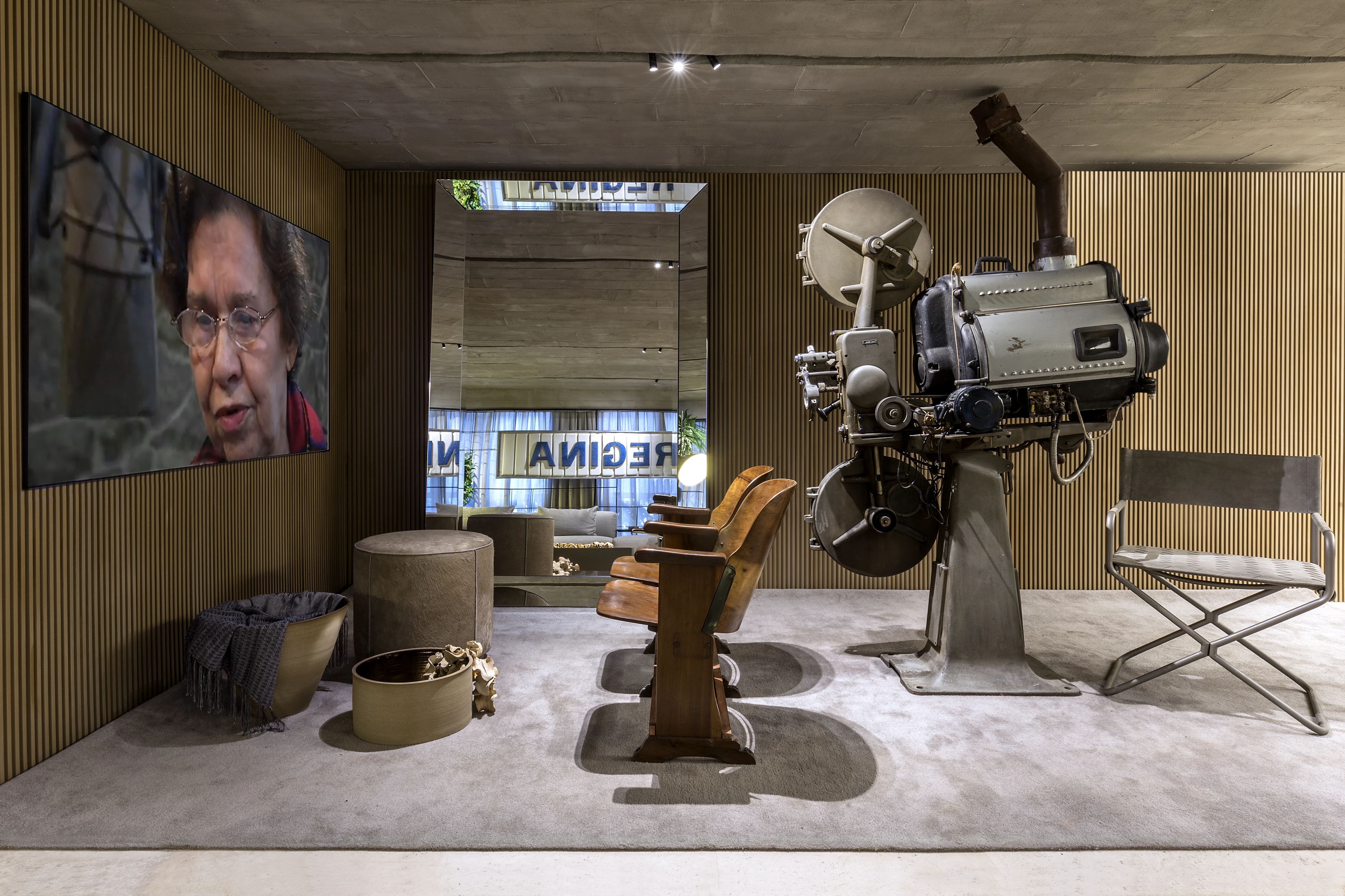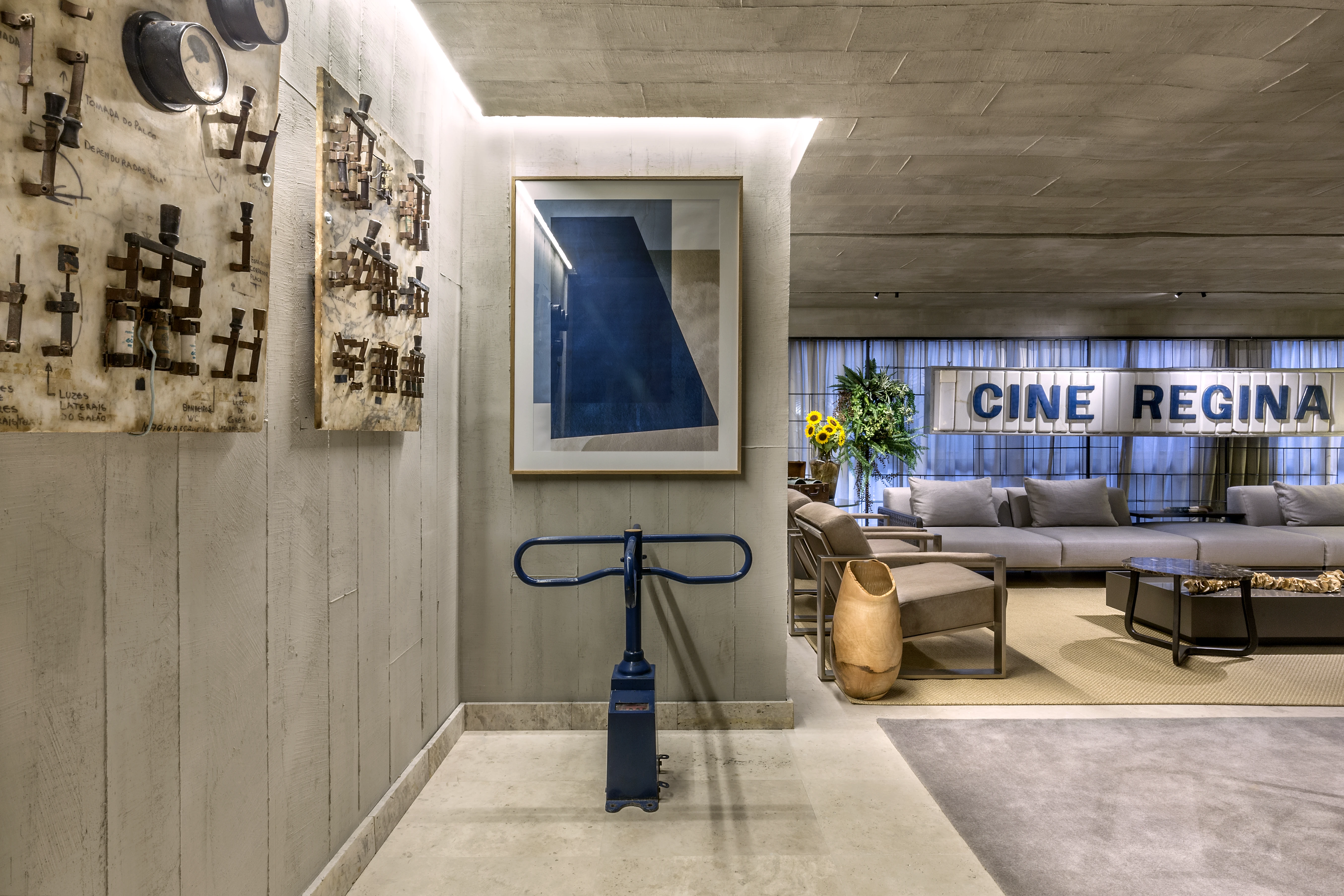Na execução, o projeto destacou-se pelo contraste equilibrado entre o mobiliário moderno, prioritariamente confortável, e os objetos ancestrais do acervo familiar, como um projetor a carvão, o letreiro original, bobinas e quadros de luz. Essa intervenção, que contrapõe peças históricas ao modernismo dos estofos e instalações, resultou num ambiente com um delicioso clima de "lounge cinematográfico".